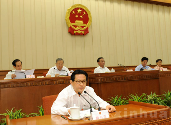 6月22日,十一屆全國人大常委會第九次會議在北京人民大會堂開幕。吳邦國委員長主持會議。 這是受國務院委托,******保密局局長夏勇就保守******秘密法修訂草案的主要內容作說明。